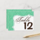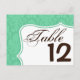 Table Number Card Mint White Damask Lace Print