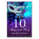 Teal Purple Feather Mask Masquerade Birthday Party. Table Number Card. Please note all flat images!