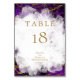 Wedding Table Number Card | Beautiful royal purple amethyst gemstone crystal geode accented with sparkling marbled gold nugget veining and quartz crystal - coordinating reverse.
