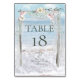 Wedding Table Number Card | Elegant seaside beach arbor of driftwood and sheer tulle drapery decorated with pale blush pink magnolia flowers and vines set on a sandy beach with white water waves and sea foam. Behind is a beautiful blue sky with fluffy clouds. Original artwork created for the BarefootBride™ by © WhimsicalArtwork™ - This is part of a complete Wedding Stationery Suite with matching wedding, baby shower and other event stationery.