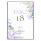 Wedding Table Number Card | Lots of pretty foliage and pink and lilac coloured flowers sets off this table number card. Customise text, font style, colour and size. Design created for the BarefootBride™ by © WhimsicalArtwork™ - This is part of a complete Wedding Stationery Suite with matching wedding, baby shower and other event stationery.