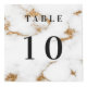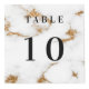 For restaurant, cafe, bar tables, Personalise and add your business logo, table numbers and QR code for your menu. White and golden marble print as background, black text.