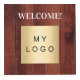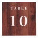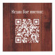 For restaurant, cafe, bar tables, Personalise and add your business logo, table numbers and QR code for your menu. A brown rustic wood print as background, white text.