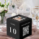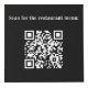 For wedding, events, restaurant, cafe, bar tables, Personalise and add a photo, table numbers and 2 QR codes for your menus. Black background, white text.