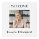 For wedding, events, restaurant, cafe, bar tables, Personalise and add a photo, table numbers and 2 QR codes for your menus. White background, black text. You can add your brand colour/theme colour in the design tool.