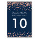 Table Number Rose Gold Faux Glitter Confetti Navy