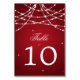 Elegant wedding "Table Number" design with Sparkling String Red and custom table number text.