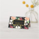 Elegant watercolor floral pattern featuring burgundy blush and white florals with green botanicals on black background. A delicate and equally elegant gold frame nestles the table number assignment under a golden line for you to handwrite your guest's names. the back of the place card includes and elegant and customisable welcome to our wedding message, bride and groom's names and wedding date.