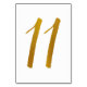 Table Number 11: This casual brush script table number card is set in a faux gold foil.