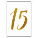 Table Number 15: This casual brush script table number card is set in a faux gold foil.