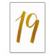 Table Number 19: This casual brush script table number card is set in a faux gold foil.