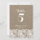 Table numbers for a rustic wedding with burlap and lace. The design is double sided. You can add each number to your cart and print both sides. All text, style, and placement is editable. Matches the burlap and lace collection in my store. http://www.zazzle.com/collections/burlap_and_lace_for_rustic_wedding-119613768546532247?rf=238757713317449265