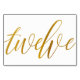 Table Number 12: This luxe elegant calligraphy table number card is set in a faux gold foil.