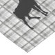 This holiday table runner is shown in a lovely grey plaid and deer print.