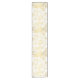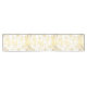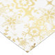 Table runner to accent your table decor is shown in a lovely gold and white holiday snowflakes print design.