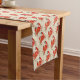This table runner is shown with a sandy background colour and has a cute beach themed red crabs print design.