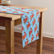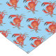 This table runner is shown with a blue background colour and has a cute beach themed red crabs print design.