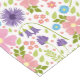 This table runner is shown in a lovely spring flowers print in colours of pink and purple on a white background.