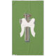 This cross tablecloth features a green background, providing a clean and elegant esthetic suitable for various occasions. Its design enhances the overall ambiance of any setting, making it a versatile choice for both formal and casual events. The simplicity of the green backdrop allows for easy coordination with different tableware and decorations, ensuring a polished look.