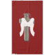 This cross tablecloth features a red background, providing a clean and elegant esthetic suitable for various occasions. Its design enhances the overall ambiance of any setting, making it a versatile choice for both formal and casual events. The simplicity of the red backdrop allows for easy coordination with different tableware and decorations, ensuring a polished look.