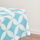 A repeat circular quarters cut out style patterned tablecloth in white on a blue background or change the colour of the background to tie in with your own dining colour choice. Designed by Sarah Trett.