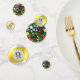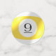 In the 19th century a poolroom was a horse race betting parlour. Pool tables were installed so the bettors could pass time between horse races. Billards, or pool, is the descendant of a game similar to croquet that was played in 15th-century Europe. Though we don't know for sure, it is strongly suspected that billiards came to America with Dutch and English settlers. By the 1700's, skilled cabinet makers were crafting beautiful tables, though the equipment was, otherwise, quite primitive. Fifteen-ball pool came on the scene in the late 1800's and grew in popularity through the 1940's. Billiards was revived in 1961 with the release of the movie THE HUSTLER. It enjoyed another surge in the mid 1980's with the release of the movie sequel, COLOR OF MONEY. Since that time, there has been an evolution of the environs in which we find pool tables -- they're in restaurants and night clubs and sports bars, allowing pool to find a modern audience and new generations of enthusiasts. This marvellous design is layers of billiard balls in varying sizes for greater depth. They are scattered all over a "green felt" backdrop on one side of the small, medium and large table confetti. On the other side, the bold, yellow-striped NINE ball . . . making this tablefetti an excellent choice for 9th birthdays, anniversaries . . . or any other noteable ninth.
