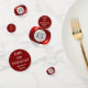 In the 19th century a poolroom was a horse race betting parlour. Pool tables were installed so the bettors could pass time between horse races. Billards, or pool, is the descendant of a game similar to croquet that was played in 15th-century Europe. Though we don't know for sure, it is strongly suspected that billiards came to America with Dutch and English settlers. By the 1700's, skilled cabinet makers were crafting beautiful tables, though the equipment was, otherwise, quite primitive. Fifteen-ball pool came on the scene in the late 1800's and grew in popularity through the 1940's. Billiards was revived in 1961 with the release of the movie THE HUSTLER. It enjoyed another surge in the mid 1980's with the release of the movie sequel, COLOR OF MONEY. Since that time, there has been an evolution of the environs in which we find pool tables -- they're in restaurants and night clubs and sports bars, allowing pool to find a modern audience and new generations of enthusiasts. This marvellous design features the bold, burgundy-striped FIFTEEN ball . . . making this tablefetti an excellent choice for 15th birthdays, anniversaries . . . or any other noteable fifteenth. The reverse is a coordinating solid burgundy featuring text you may personalise to your special "fifteenth" event.