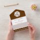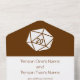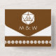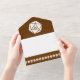 Bring touch of geeky fun to your event with this all-in-one wedding invitation and RSVP card. On the inside you will find a white twenty-sided die on a rich chocolate background above a section with some sample text that can be customised for your special day. The lower section of the invite features a removable, postcard sized piece that has some sample RSVP text sitting above a chocolate brown border with pattern of d20s scattered across the bottom. Outside, a similar border of twenty-sided dice on chocolate can be found below the areas where you would add stamps, standard, and return addresses for both the invitation as a whole and the returnable RSVP section. The flap used to fold over and seal the card has a single d20 on a rich brown background with a sample set of initials that you can customise for a final personal touch that shows off your love for tabletop gaming and each other. Be sure to check out the rest of the Tabletop Chic in Chocolate set for other coordinating products, including return address labels.