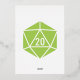 Bring touch of geeky fun to your event with this wedding invitation featuring a pastel peridot green border on the right side, decorated with a pattern of twenty sided dice printed in real foil. The left side of the card has plenty of space for all of the details for your tabletop gaming-themed event with some sample text in place that can be customised to fit your needs. A large, pastel green d20 finishes things off on the back to create a cute final note. This invitation will match with any other Tabletop Chic in Peridot product so that you can easily make your event as coordinated as you desire.