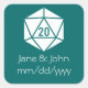 This deep teal sticker features a white twenty-sided die, accenting text that can be customised for your special event and sharing your geeky passion. These stickers are perfect for decorating gift bags at weddings or party favours for any special event or for use as save-the-date stickers that your invited guests can put in their keepsake collections.