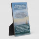Tabletop Plaque with Easel this image is a poster with a peaceful ocean scene in the background. The text on the poster is in white and brown, featuring a quote about questioning and trusting God. It emphasizes that it is natural for humans to question God's mysteries, but true spiritual growth comes from trusting in His guidance. The poster uses the analogy of a sailor navigating the ocean without knowing everything about it to illustrate the concept of trusting in God's guidance.