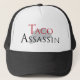 Taco Assassin hat. A hat featuring the phrase “Taco Assassin” in Trajan Roman font over the silhouette of a grey taco. A great gift for fans of tacos, video games, and parody.