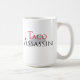 Taco Assassin mug. A featuring the phrase “Taco Assassin” in Trajan Roman font over the silhouette of a grey taco. A great gift for fans of tacos, video games, and parody.
