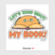 An epic funny cartoon let’s taco bout my book fun self promotion author self published fiction or non-fiction writer design great writer’s gift genre slogan writer pride cartoon style motto design book author pride bookish aesthetic motto novel deluxe decal sticker that’s perfect for writers of all genres. Get a fun author motto sticker today.