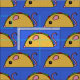 This cute taco rat pattern is bursting with cheese, lettuce and tomato on a blue background.