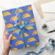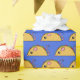 This cute taco rat pattern is bursting with cheese, lettuce and tomato on a blue background.