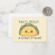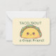 Celebrate friendship in the classroom with this cute taco-themed Valentine note card featuring the playful message “Taco ’Bout a Great Friend!”