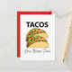 Tacos One More Time Mexican Food Taco Postcard original design by Nisha Prabhu. Bring a fiesta to your mailbox with this vibrant postcard celebrating the deliciousness of Mexican cuisine! Featuring a colourful design bursting with mouthwatering tacos, this postcard is perfect for sharing your love for Mexican food with friends and family. Whether it's Taco Tuesday or any day of the week, this card captures the tantalising essence of spices, savory fillings, and that irresistible crunch. Imagine the joy of receiving this cheerful reminder that life is better with a side of guacamole! Perfect for foodies, travelers, or anyone who can't resist the call of a tasty taco, "Tacos One More Time" invites everyone to indulge in the flavours of Mexico.