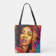 "Tahlia" is a bold, colourful pop art style tote bag featuring an artistic image of a beautiful black woman. Celebrate the beauty and diversity of African American women with this stunning bag in rich shades of yellow, orange, red, pink and blue.