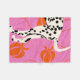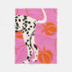 A bold and modern art print featuring a Dalmatian's hind legs and tail against a vibrant pink background. Stylised orange peaches and curved lines add a playful, abstract touch. Perfect for dog lovers and those who appreciate unique, graphic designs.