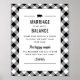Add a fun interactive element to the couples wedding shower with this coordinating Tailgate and Celebrate Jenga game display featuring the Marriage Is All About Balance message and a pig silhouette icon on a white panel framed by a bold black and white gingham border. Guests are invited to share wisdom, a funny thought, or simply sign their name on a block for the happy couple to remember. All text is fully customizable.