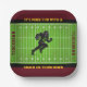 Designed with a rich burgundy and gold colour scheme, these plates feature a dynamic running football player silhouette on a classic green football field. All text is fully customisable! You can easily change phrases like 'IT'S MORE FUN WITH A SNACK ON THIRD DOWN' and 'TOUCHDOWN' to your own unique messages, a favourite team name, or any game day saying. Whether you're tailgating at the field or throwing a game day party at home, these personalised plates set the perfect scene. Great for football season kickoffs, playoffs, the big bowl game, or any gathering where sports and good food are on the agenda.