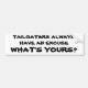 Tailgaters Always Have an Excuse. What's Yours? Bumper Sticker