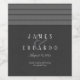 Set a refined tone for your wedding celebrations with this contemporary black tuxedo wine label. Featuring sleek graphics that echo the refined details of a classic tuxedo, this wedding collection includes elements like pleated cummerbund patterns, crisp whites and glossy black accents for a tailored, modern vibe. Perfect for two-groom couples who love bold minimalism, this design delivers an effortlessly elegant aesthetic that’s both timeless and sophisticated. Search ID1090 to see other pieces in this coordinated wedding set.