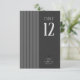 Set a refined table for your wedding celebrations with this contemporary table number design. Featuring sleek graphics that echo the refined details of a classic tuxedo, this wedding collection includes elements like pleated patterns, crisp whites and glossy black accents for a tailored, modern vibe. Perfect for two-groom couples who love bold minimalism, this design delivers an effortlessly elegant aesthetic that’s both timeless and sophisticated. Search ID1090 to see other pieces in this coordinated wedding set.