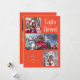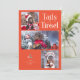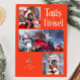 Cute and funny Christmas holiday photo template card for dog owners featuring a typography text at the top that says "tails & tinsel" with 3 photos of your dog(s). The background is retro red.