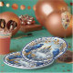 Serve your guests on these beautiful plates with a golden image of the Taj Mahal, a pair of bluebirds and a branch of blue winter berries