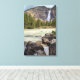 The thundering waters of Takakkaw Falls in Yoho National Park in British Columbia Canada. This popular tourist attraction features the turqouise blue waters of glacier melt. It tumbles down 1246 feet into the Yoho river below.