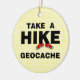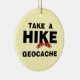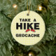 Take a hike, geocache text, with the K in hike wearing sneakers is a funny geocaching design for cachers at birthdays, holidays and geocaching events.