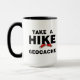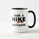 Take a hike, geocache text, with the K in hike wearing sneakers is a funny geocaching design for cachers at birthdays, holidays and geocaching events.